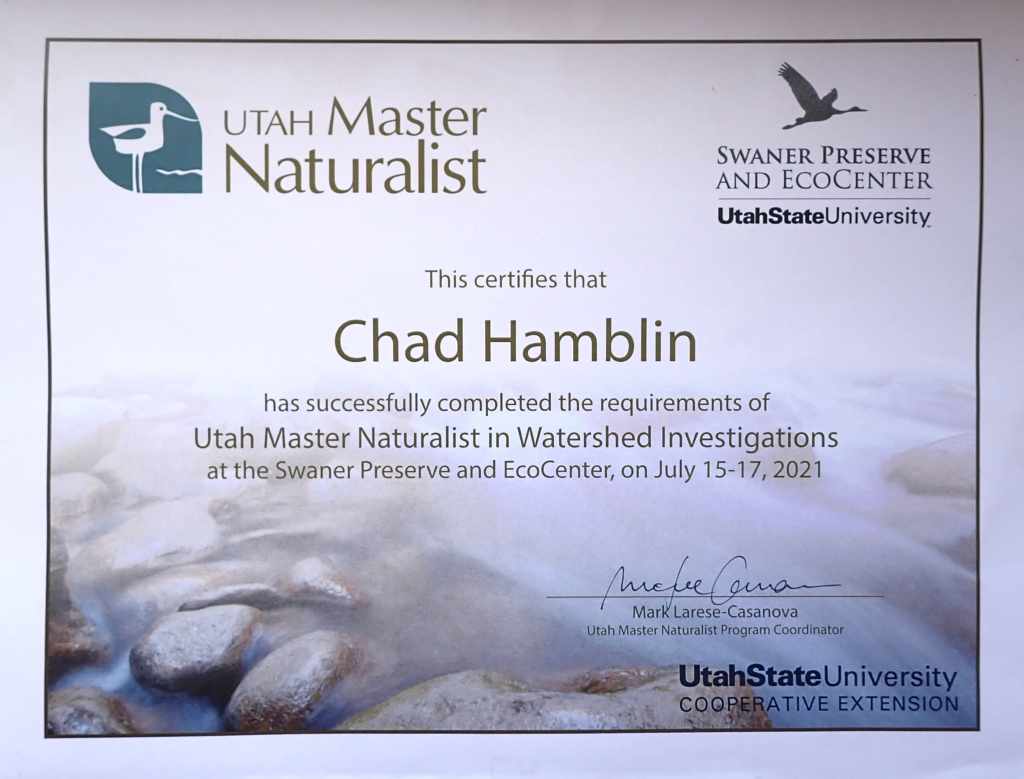He has led students, boy scout troops, friends, and family members on numerous nature hikes, and continues to explore the outdoors on regular hiking adventures alone or with his wife and dogs, occasionally chronicled on his blog, Uintah Wildman.